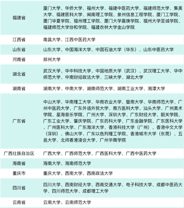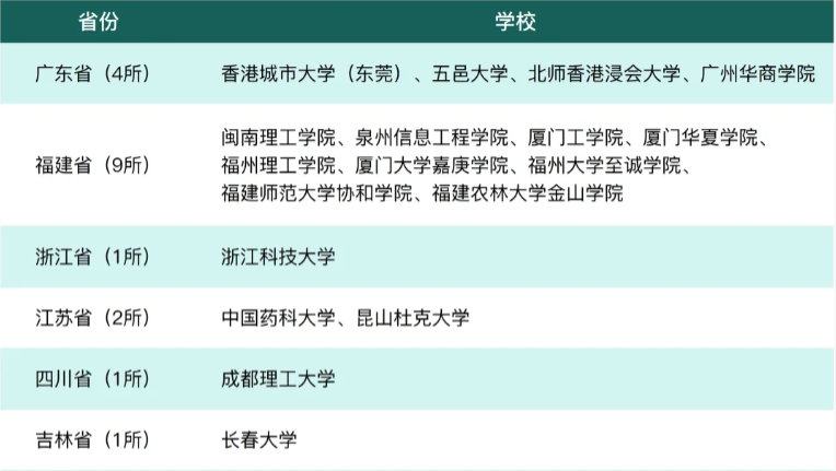 本次名单扩容福建省新增最多,共有9所高校加入名单。而内蒙古自治区今年也加入DSE学生招收工作。