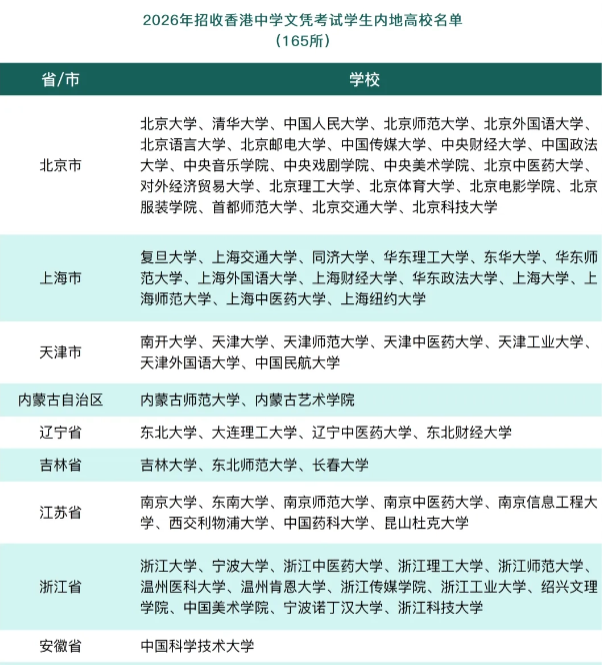 摘要:增加至165所!教育部公布2026年招收DSE考生内地大学名单!