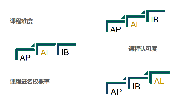 总体来看,在比较常见的这三门课程中,IB的综合选择度是相对的。下面我将从课程难度、课程认可度和课程进概率三个方面进行具体的分析。