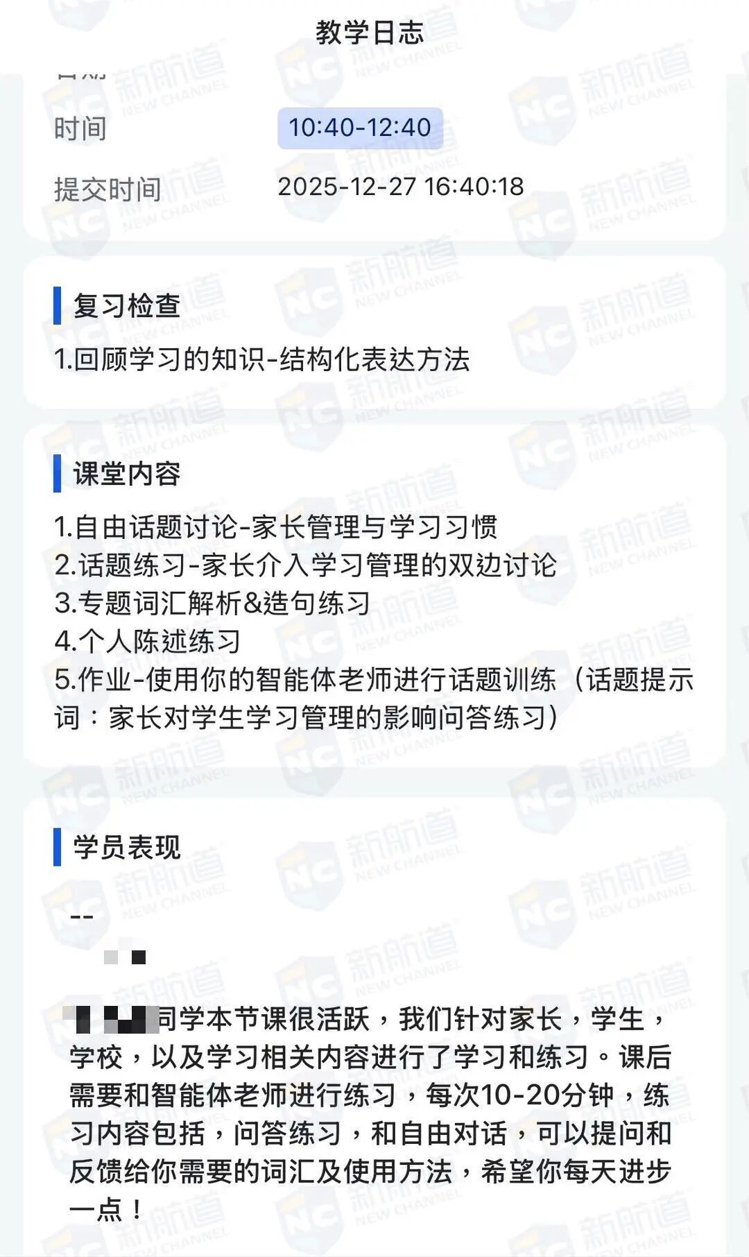 及时反馈学情,学管老师定期向家长反馈学生出勤、课堂参与度及考试情况,保持家校信息透明。