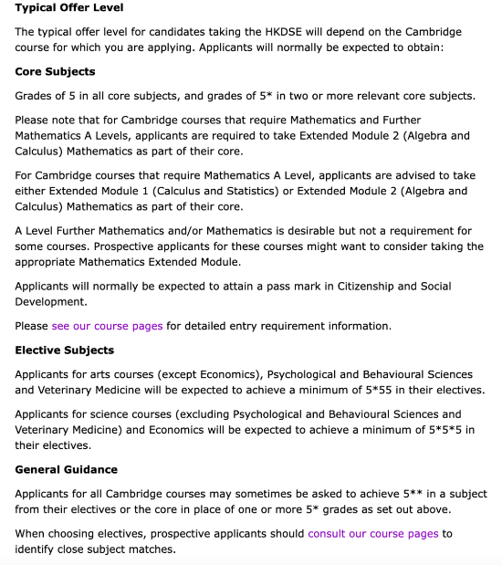 例如,剑桥大学要求提供DSE四门必修+三门选修5分及以上的成绩,与专业相关的核心课程需5*以上。