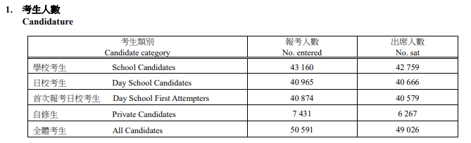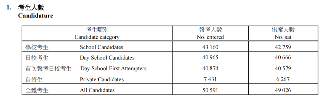 据官方数据来看,今年有49,026人参加DSE考试,其中包括了42,759名在校考生和6,267名自修生,内地报名自修生约1200人。