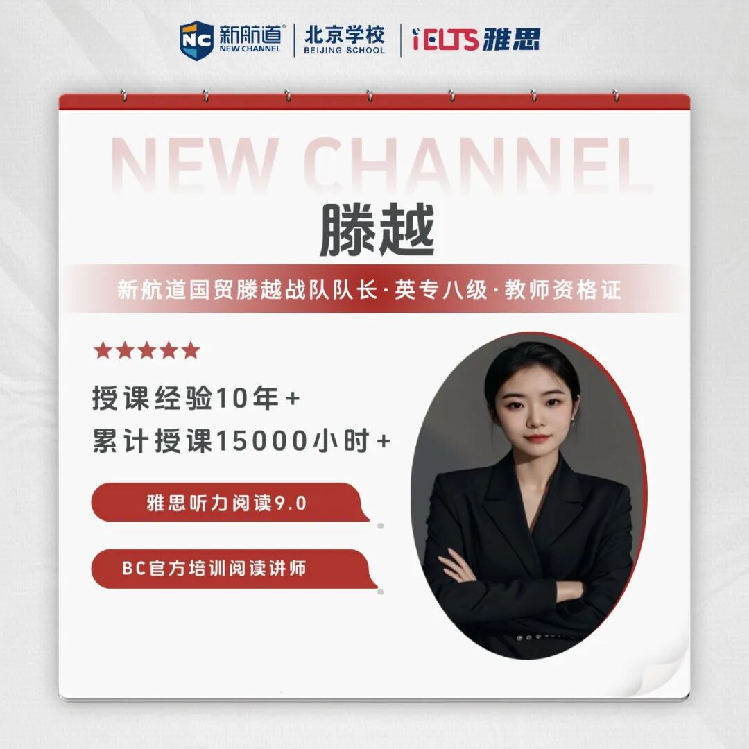 如果你想知道自己的阅读水平属于哪个阶段,或者需要定制专属提分计划,新航道北京学校滕越老师带领的“国贸滕越雅思学术战队” 可以帮到你!
