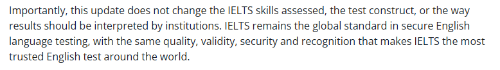 雅思官方强调,这一更新不会改变雅思考试所评估的语言能力、考试结构或成绩解读方式。