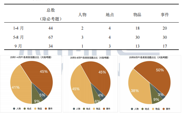Task 1 小作文:截至9月,动态图依旧占主导,出现17次,占比56.7%,其中柱状图最常见,线形和表格次之。值得注意的是,地图题与流程图题数量明显上升,9月甚至连续两场出现地图题。