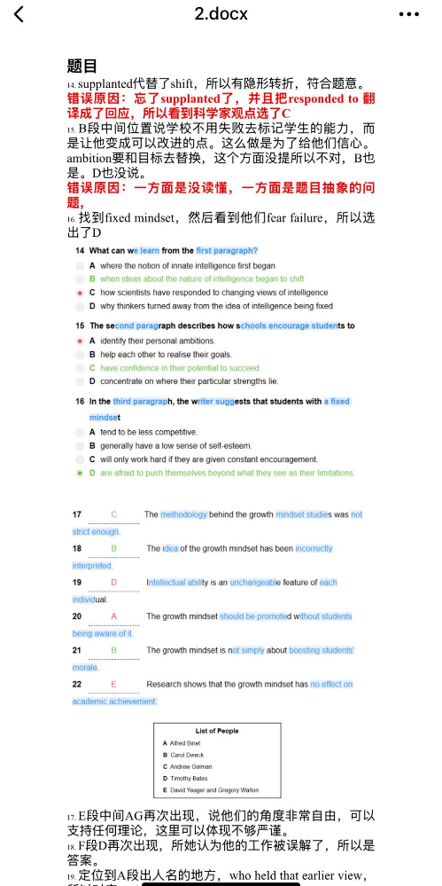 他在简单的有特殊词的填空判断上准确率高;但在稍难的填空题、判断题上,一旦涉及复杂逻辑或同义替换,就会出现明显波动;特别是 Passage 1 + 2,本该拿分的部分,常常出现“明明会做却错”的情况。