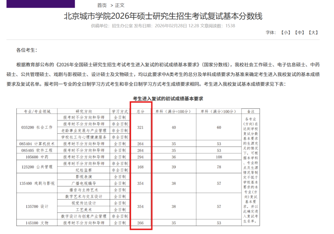 北京城市学院也已公布2026年复试分数线,对于报考去年复试线为国家线院校的考生,今年可参照国家线准备,过国家线即可进入复试名单,需全力备战一志愿复试。