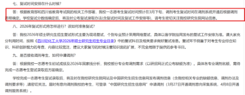 四川轻化工大学指出,需待招生计划下达后划定各专业复试分数线,一志愿复试同样安排在3月下旬,复试将以现场形式为主,部分专业采用线上复试,且学校部分专业存在调剂需求。