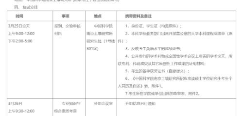 中国科学院南京土壤研究所复试时间为3月25-26日,3月27日体检。