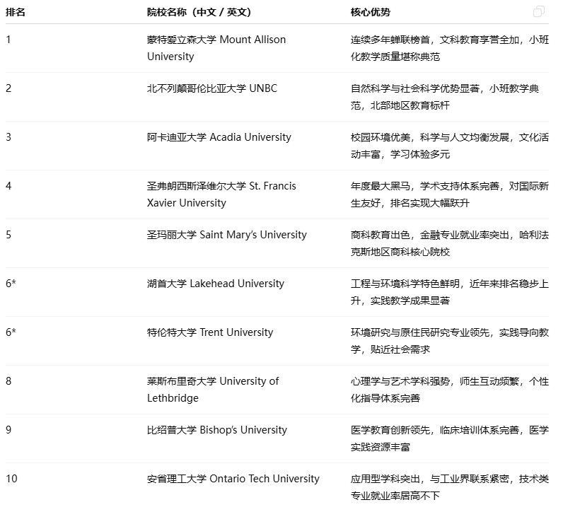 圣弗朗西斯泽维尔大学(St. Francis Xavier University)今年从第10位跃升至第4位,成为基础类院校中的黑马。学校在学术支持体系、国际生辅导服务等方面投入显著提升,对准备初到加拿大的留学生尤其友好,教学氛围与学生体验均获好评。