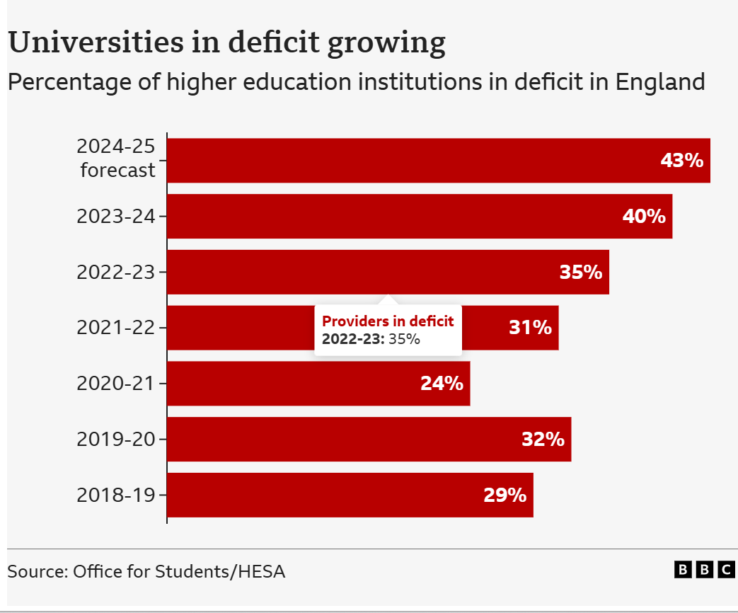 ● 经济压力持续加大:目前约有40%的英格兰高校处于财政赤字状态,运营成本高企,而政府补助有限。