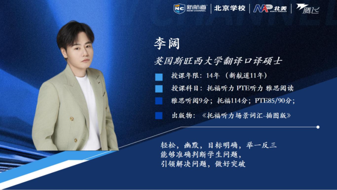 优质师资,专业度拉满:新航道托福4R朝阳战队教师平均教学经验8年+,平均托福分数110+,90%以上是海归硕士。托福听力组王慧峰老师助学生拿120分满分,有英国斯旺西大学翻译口译硕士李阔(雅思听阅9分、托福114分),还有哈佛大学肯尼迪政府学院硕士姜良国老师等,为教学质量保驾护航。
