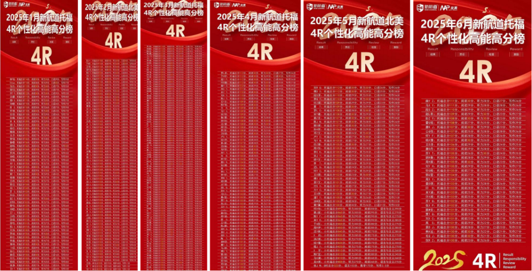 2025年上半年,新航道北美教师团队交出亮眼成绩单,1-6月每月都有大量学员通过新航道托福4R课程实现托福高分突破,从“备考迷茫”到“稳拿目标分”,4R体系用实力证明了其效果。