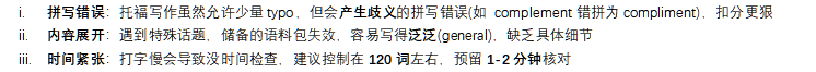 3、语言错误容易导致失分,有些词拼错扣分更狠。