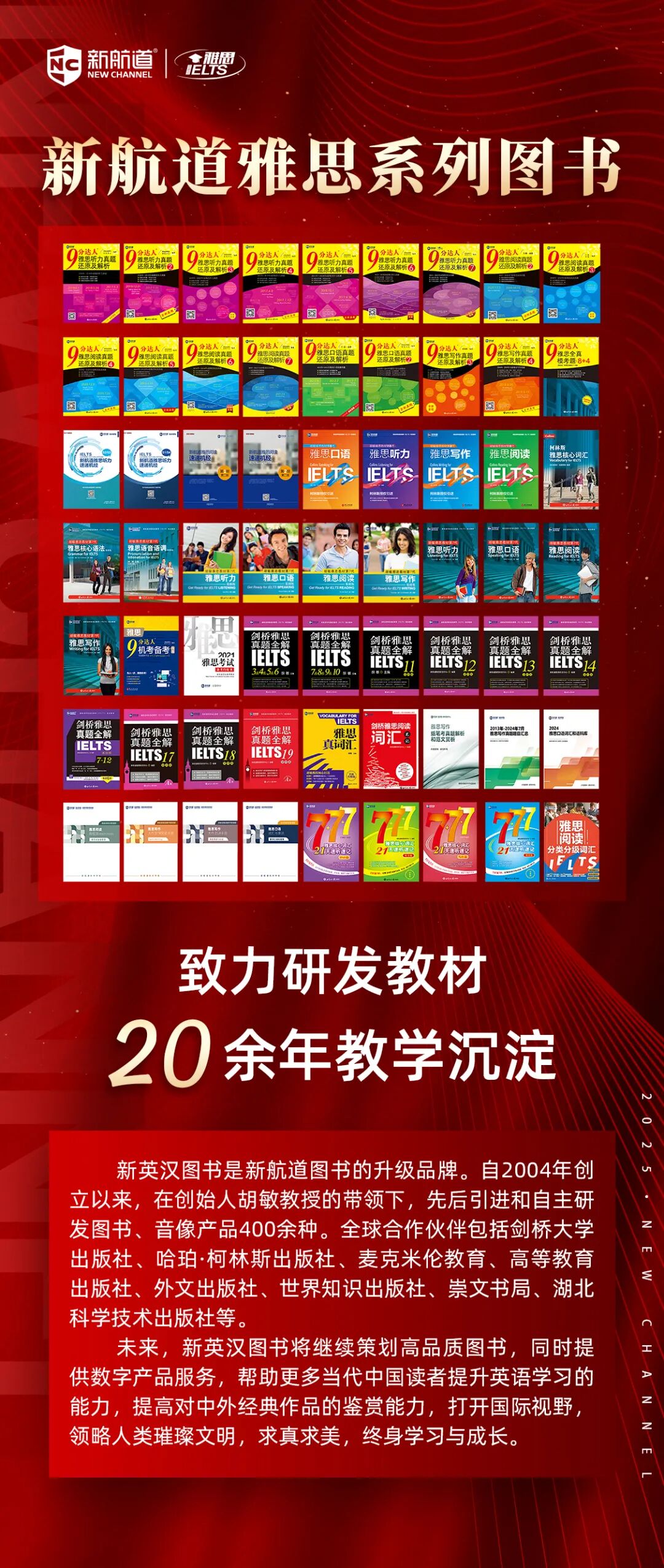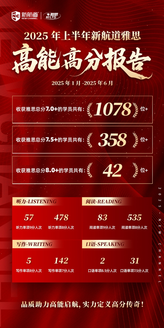 作为雅思官方长期合作伙伴,新航道国际教育集团始终致力于以高标准教学和系统化课程体系助力中国考生提升英语能力与国际竞争力。自成立以来,新航道坚持学术品质导向,在雅思教学研究、教材研发及师资建设方面持续投入,形成了覆盖多层次需求的培训体系。