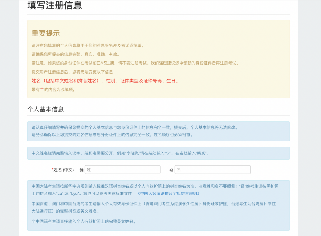 注意:需要在预定考位后的30分钟内完成填写,否则无效。