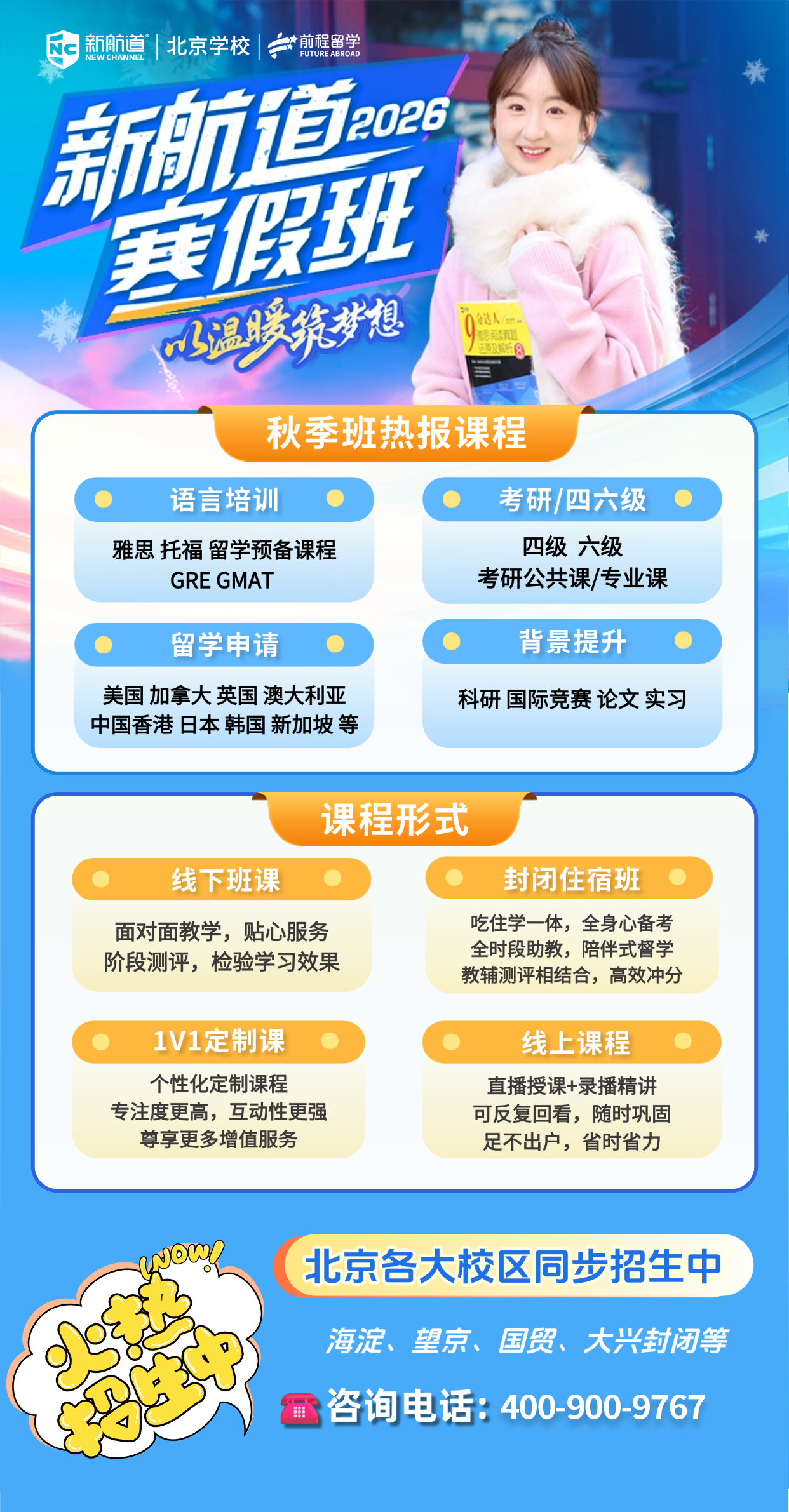 发布时间:2025-11-07 关键词:新航道2026寒假班火热招生中