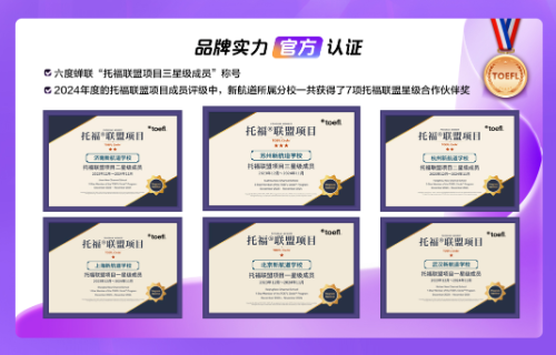 在2023-2024年度的托福联盟项目成员评级中,新航道6度蝉联“托福联盟项目三星级成员”称号。所属分校一共获得了6项托福联盟星级合作伙伴奖,其中新航道苏州学校获得了三星级合作伙伴奖。