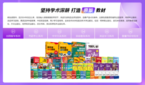 成立21年来,新航道依托深厚的学术积淀,建立了一套完整的托福考试教学与图书研发生态。从不断迭代的经典系列,到满足词汇、语法、场景应用等多维度需求的细分品类,我们通过科学严谨的研发体系,确保了每一本出版物都能切中考生痛点,成为备考路上的可靠助力。