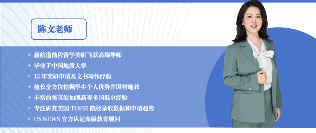 申请团队由国内美研申请专家及海归组成,辅以美国top20大学同专业海外Mentor头脑风暴和藤校外籍导师进行文书润色,制定标准化服务流程并严格把控服务质量,为学生提供全面的背景提升和留学申请服务。